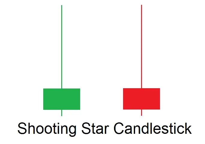 Shooting star muncul saat harga sempat naik tinggi banget, tapi akhirnya ditarik turun lagi dan nutup deket harga open. Bodi kecil di bawah, ekor (wick/shadow) atas panjang.